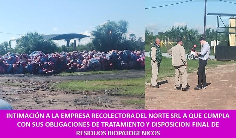 INTIMACIÓN A LA EMPRESA RECOLECTORA DEL NORTE SRL A QUE CUMPLA CON SUS OBLIGACIONES DE TRATAMIENTO Y DISPOSICION FINAL DE RESIDUOS BIOPATOGENICOS